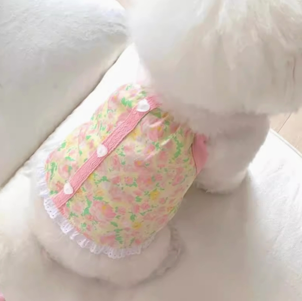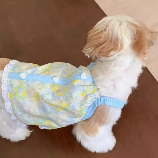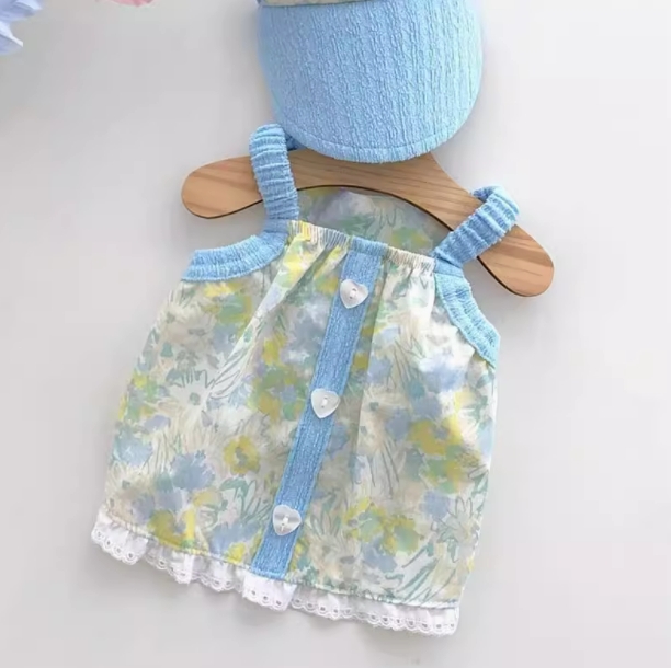 宠物狗狗猫咪、清新小花吊带、夏季薄款衣服
