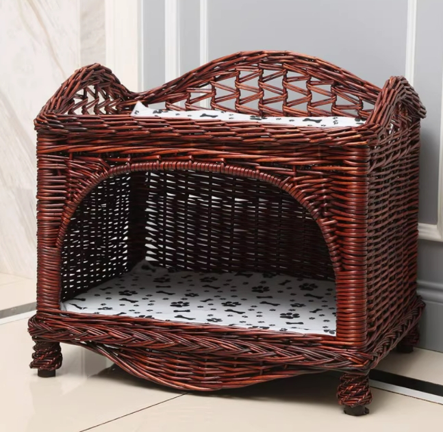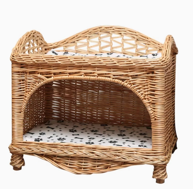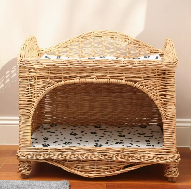 双层猫窝四季通用可拆洗别墅夏季藤编猫屋封闭式猫房子小狗窝