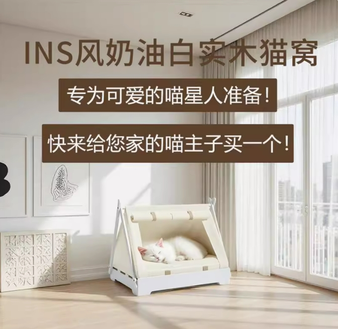 北欧白宠物床+海绵垫+帐篷屋套件