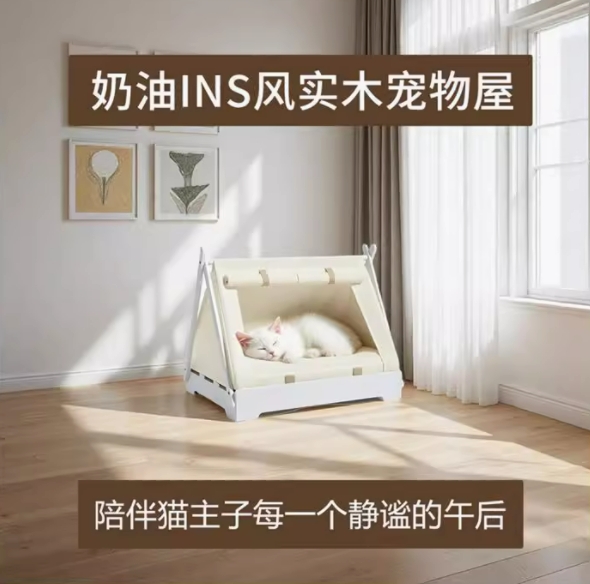 实木宠物帐篷狗窝猫床夏季半封闭式安全感四季通用中小型犬可拆洗