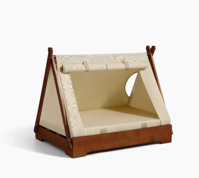胡桃木色宠物床+海绵垫+帐篷屋套件